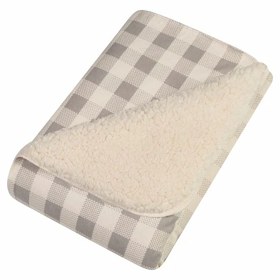 Keep your little one warm and secure with this Buffalo Check Flannel and Faux-Shearling Baby Blanket by Trend Lab!
