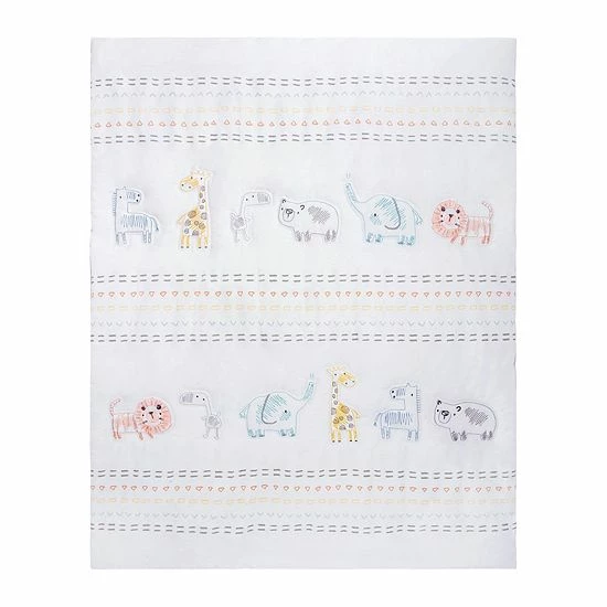 - Featuring your favorite jungle animals drawn as if by crayons and accented with detailed quilt stitching