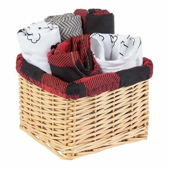 - 2 Deluxe Bibs, 3 Deluxe Burp Cloths, Basket Liner, Willow Basket
