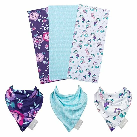 Keep your little one cute and clean with this Trend Lab Mermaids 6-Piece Bib and Burp Cloth Set.