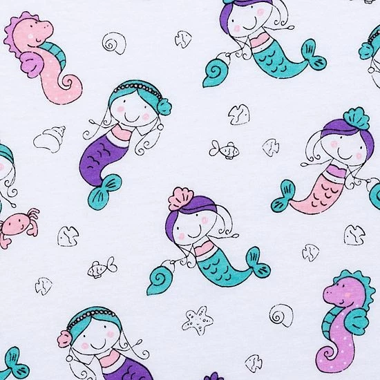 - Print of playful mermaids frolicking with fish, seashells and starfish