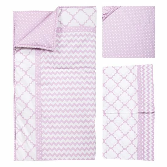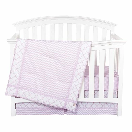 Add classic charm to your little one’s nursery with this Trend Lab crib bedding set, featuring chevron, polka-dot & quatrefoil designs. In purple/white.