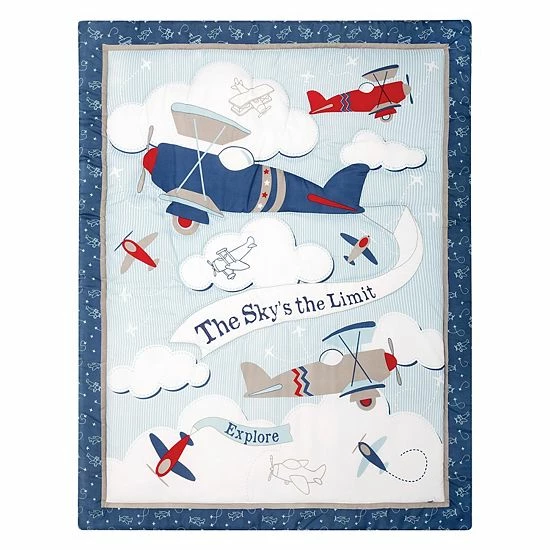 - The navy blue, light blue, red and gray color palette is perfect for your little explorer!