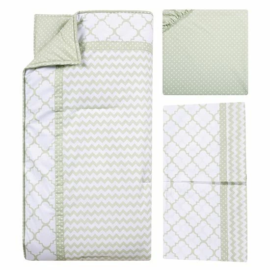 Add classic charm to your little one’s nursery with this Trend Lab crib bedding set, featuring chevron, polka-dot & quatrefoil designs. In green/white.