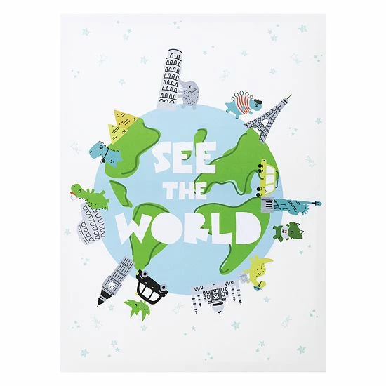 Complete the look of your baby’s room with the See the World Dinosaurs Canvas Wall Art which features dinosaurs traveling the globe to visit many popular landmarks.