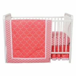 Add an elegant yet vintage touch to your baby’s nursery with this Trend Lab scalloped-arch and floral crib bedding set. In coral/white.