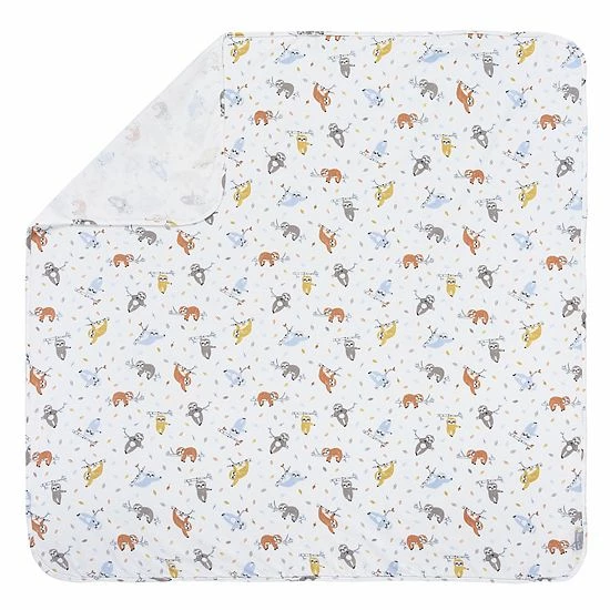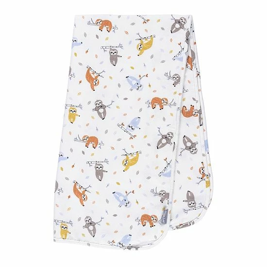 The Slothing Around Jumbo Flannel Swaddle Blanket by Trend Lab offers the perfect amount of breathable warmth and softness to keep baby nice and cozy. The soft 100% brushed cotton flannel swaddle features adorable sloth babies sleeping and hanging out on branches surrounded by muted red, blue, gray and yellow leaves on a white background. Our generously oversized swaddles measure 48 in x 48 in and are multipurpose for swaddling, tummy time and on the go nursing!